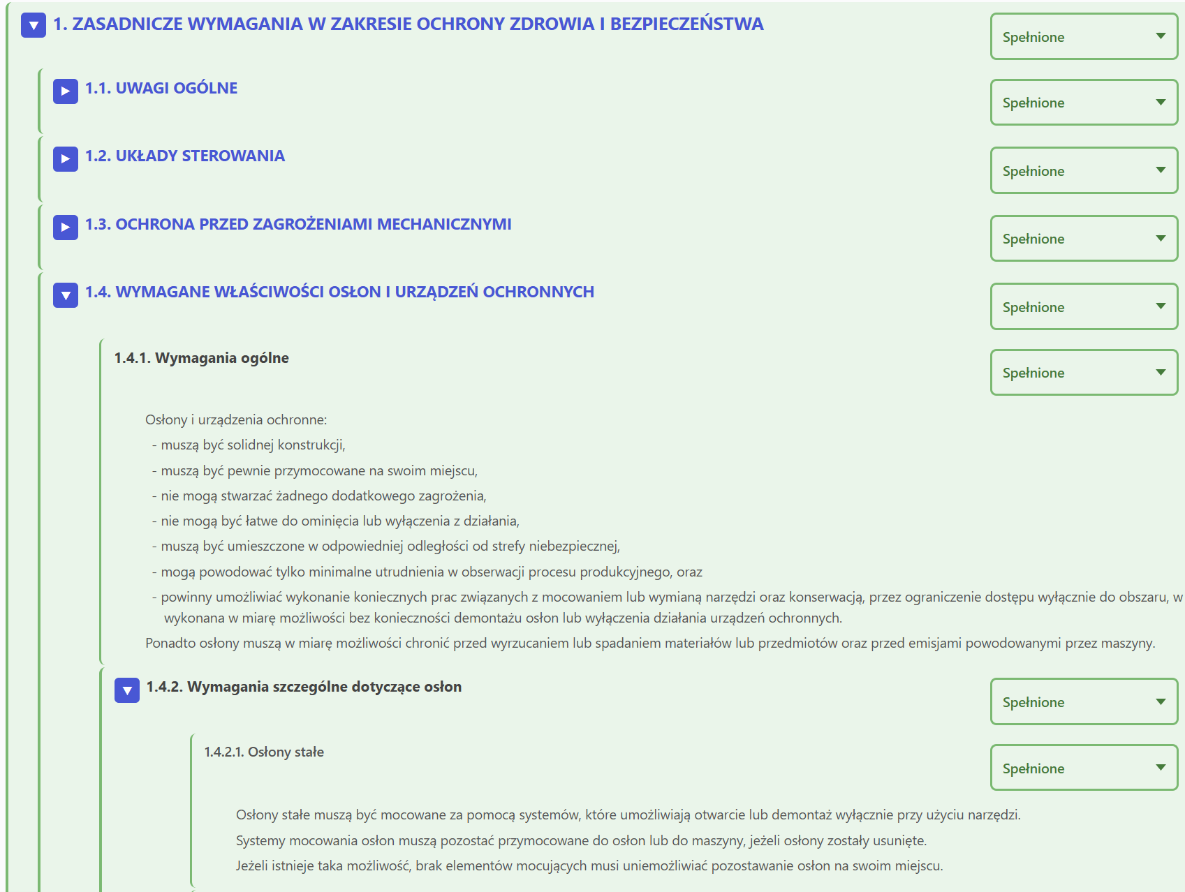 Tabela spełniania wymagań zasadniczych dyrektywy maszynowej